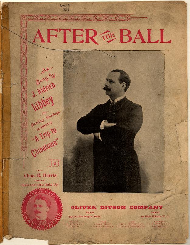 Charles K. Harris (1867-1930), compositor y banjoista autodidacta, escribió "After the Ball" en 1891 para un minstrel show de Milwaukee, un vals que hubiera pasado completamente desapercibido de no haber sido intercalado en la comedia musical A Trip To Chinatown, de Charles H. Hoyt, estrenada en el Madison Square Theater de Broadway el 6 de noviembre de 1891. Cantada por J. Aldrich Libbey (1864-1925), su popularidad creció hasta límites insospechados, convirtiéndose en la canción más popular de su época, vendiéndose más de dos millones de copias de su partitura.